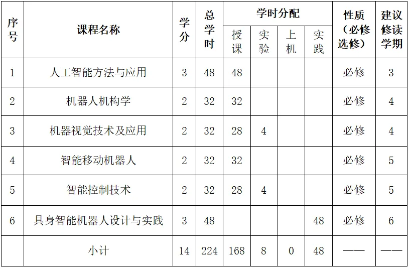 本微专业以机械学科为起点,以融入计算机技术、自动化技术等专业相关知识与能力培养目标,培养学生掌握具身智能与智能机器人领域的基础理论、专业知识和实践技能,并具备跨学科交叉融合能力、创新意识和团队协作精神。